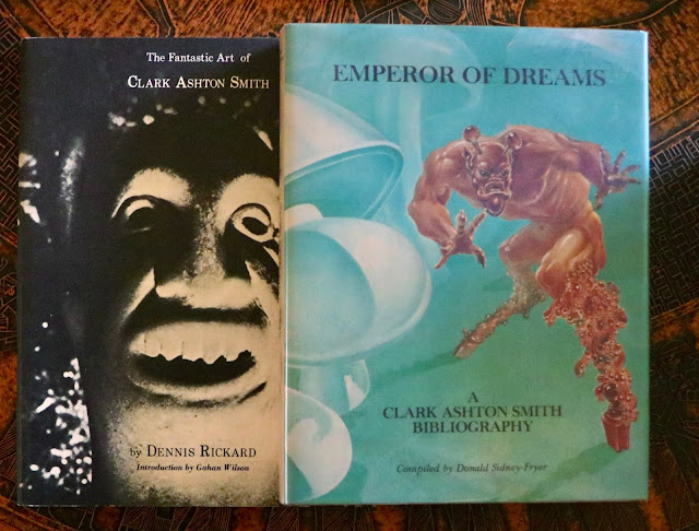 I also wanted to mention a couple items that I thought would be of interest to readers of this blog. The first is a documentary I just watched on Vimeo, Clark Ashton Smith: The Emperor of Dreams directed by Darin Coelho Spring. Smith is a favourite author and I thought this was a great overview of his life and career. It featured a number of tours by Smith scholar, Donald Sidney-Fryer. There were interviews with S.T. Joshi, W.H. Pugmire, and an extensive interview with Harlan Ellison on Smith's influence on his work. Ellison also mentions how he first encountered Smith's "City of the Singing Flame" in Derleth anthology The Other Side of the Moon. I found the interview with Smith's stepson Prof. William Dorman particularly interesting. The documentary also featured some of Smith's painting and sculptures and I have to admit I has really impressed. The b&w reproductions in my copy of The Fantastic Art of Clark Ashton Smith did not do them justice and led me to undervalue them.